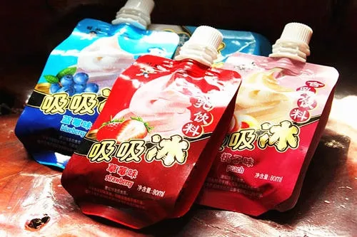 适用于各种特殊要求的饮品用品包装等,吸吸果冻,水素水,液体饮料,洗衣液,番茄酱等包装,按照客户特殊要求制作不同款式的异型包装。